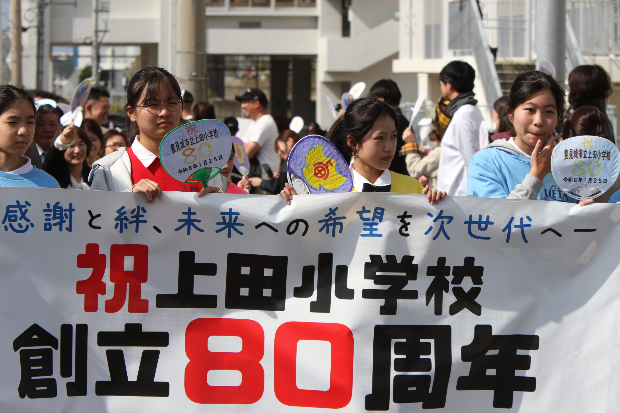 令和8年1月25日(日) 上田小学校が80周年を迎えパレードが行われ多くの方々が沿道で応援をしました。